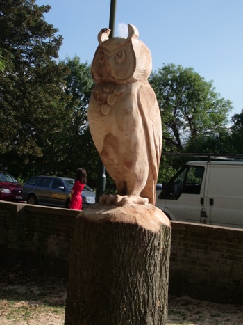Paul Sivell finished his latest commission yesterday, 23 July 2014, of an owl in Knellar Gardens, Richmond Upon Thames. Why not go along and have a look?