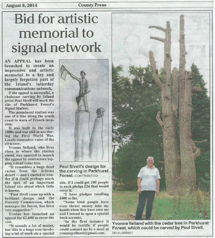 We are also trying to raise funding for a wonderful tree carving in Parkhurst Forest. Yvonne Yelland is campaigning this worthy cause to save a bit of history for future generations. Paul has substantially dropped his fees and we hope to get donations as well.