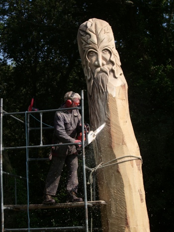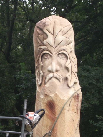 Paul is busy working away at a new sculpture on the Newport Road, Cowes. The tree is a magnificent 120 year old Oak and will become a landmark for a town that was once world famous for its boat building. So far this has taken Paul three weeks of intensive carving but we hope to finish this week. If you are on the Isle of Wight, why not pop along and watch Paul carving. Photos to follow